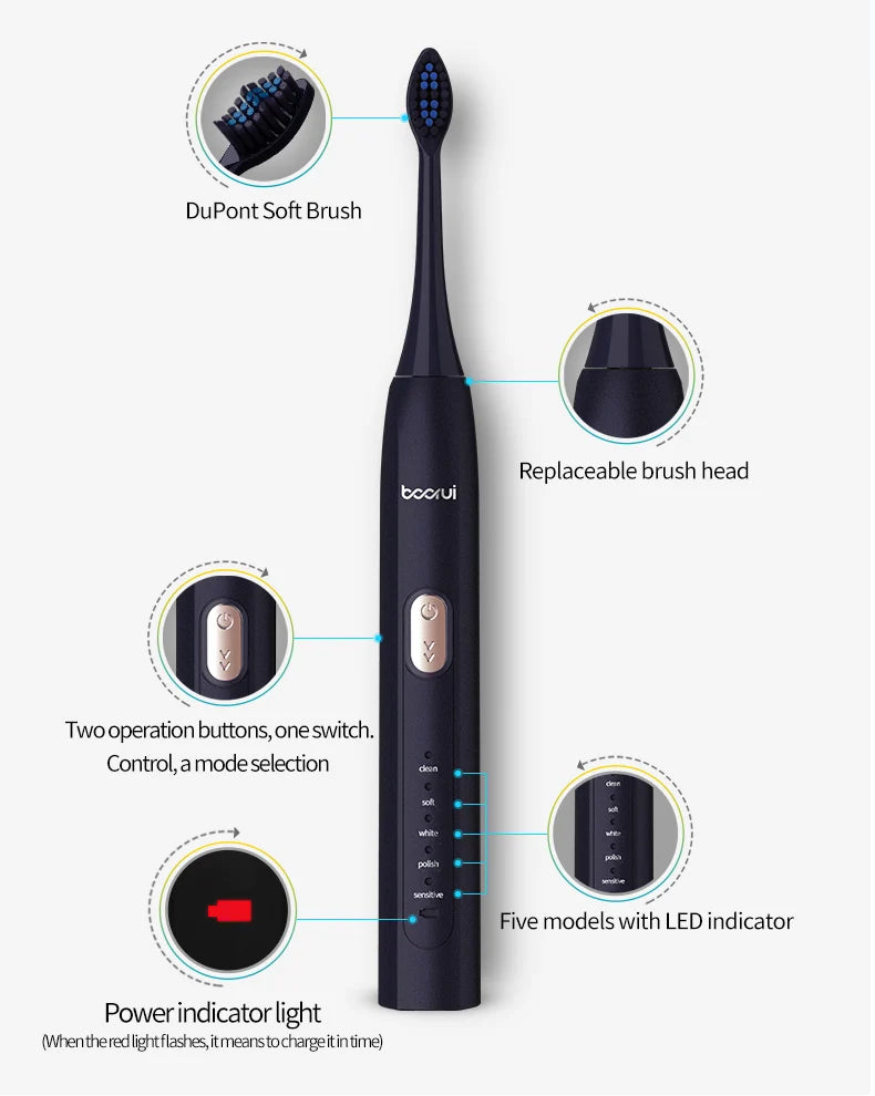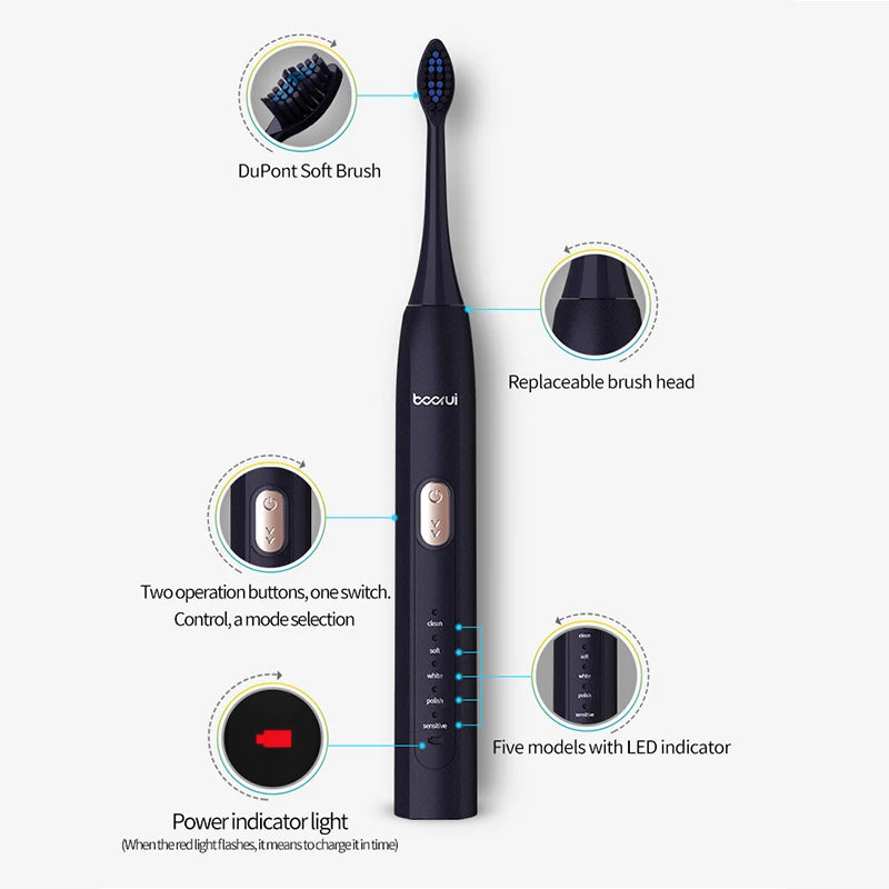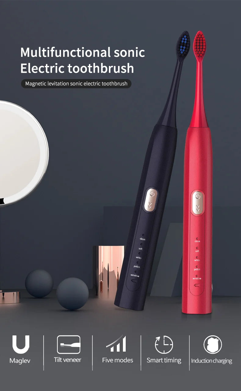Multi function Electric Toothbrush Rechargeable Inductive Charging Adult Smart Ultrasonic Automatic Toothbrush holder 4 Heads