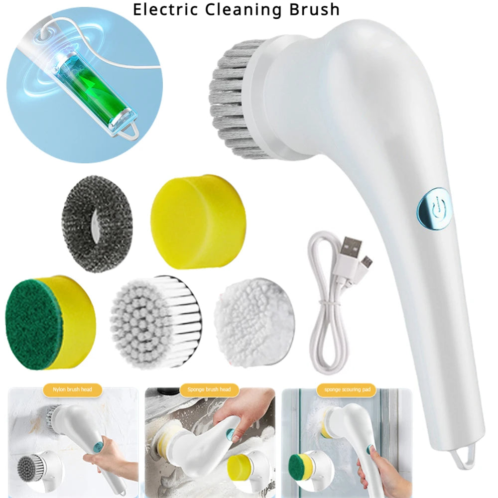 5 In 1 Multifunctional Electric Spin Scrubber Rechargeable Handheld Cleaning Brush with 5 Brush Heads Waterproof Cleaning Tool for Wall Dish Tile Tub Floor